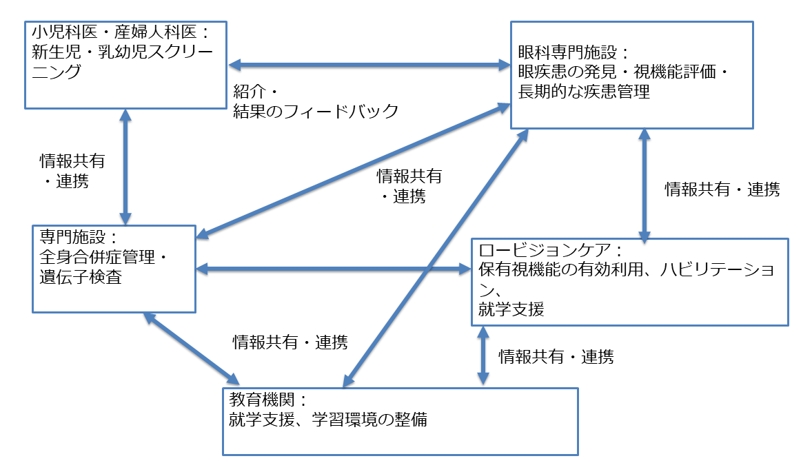 乳幼児の視覚障害を早期に発見のための連携法を示す。